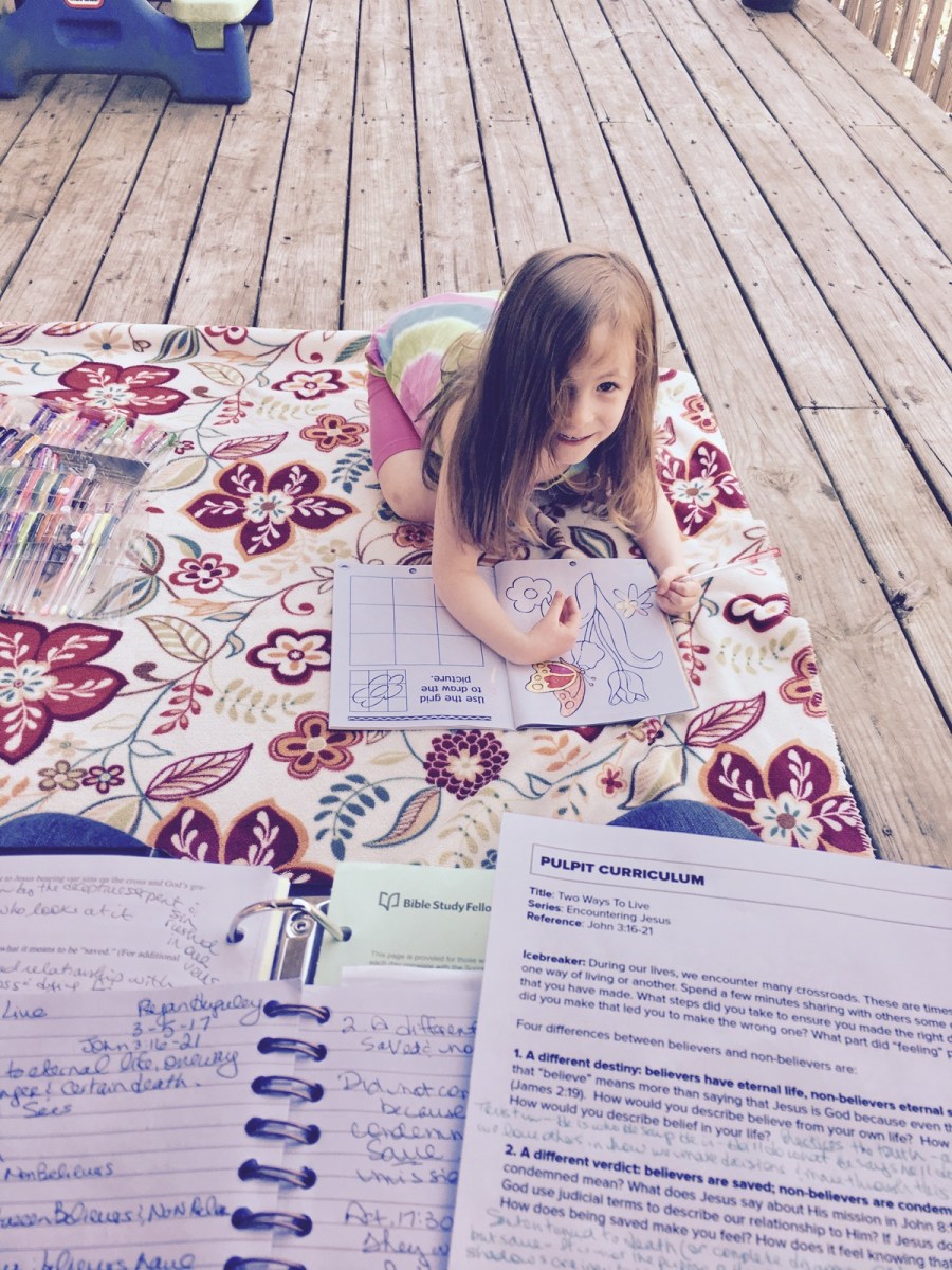 I do not “push” what I believe on her. I tell her what the Bible says and what Jesus did and I pray that the Holy Spirit will convict her and she will have faith in Him and a personal relationship with Him that backs up all that she sings and prays about now. I’m thankful God let’s her heart be open to the gospel and she is able to speak and sing about Him AND love her daddy and come to understand there are believers and non believers. Just as I am sensitive to how others speak about “them” (non believers) I pray she also will be able to shed light and love into the world, with compassion and grace, not condemnation and judgment. And pray. Oh let her be a prayer warrior for the lost!